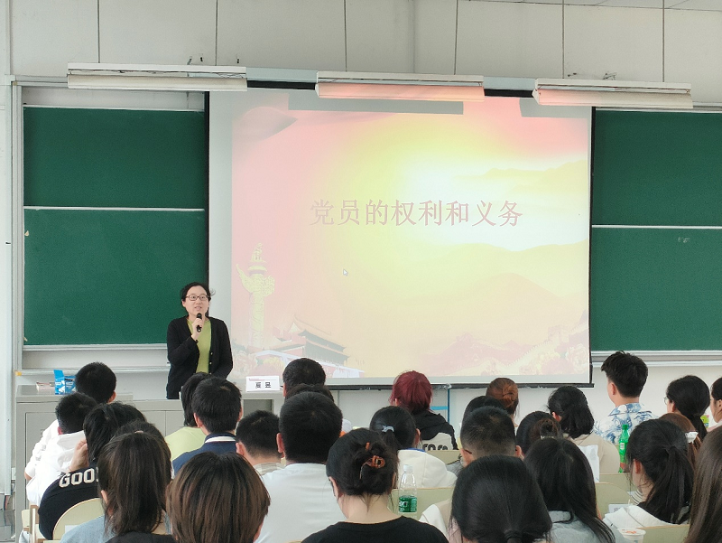 王婧为入党积极分子培训班讲授了《传承伟大建党精神,坚定文化自信自强》的主题党课。她为学员详细解读了伟大建党精神,号召广大青年要坚定文化自信,传承以伟大建党精神为源头的精神谱系,为实现中华民族伟大复兴凝聚精神力量。夏昱带领学员全面学习了党员的权利和义务,她强调作为入党积极分子要以党员的标准严格要求自己,从思想上和行动上积极入党。