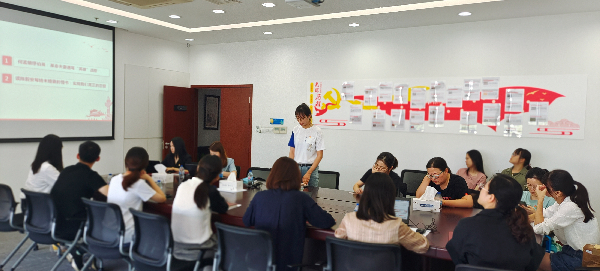 宣讲团成员施懿芸以“伟大建党精神的科学内涵与时代价值”为主题开展宣讲,从习近平“七一”重要讲话的篇章结构、新思想新论断入手,深入浅出地解读了伟大建党精神的深刻含义。宣讲团成员穆兰讲述了七一勋章获得者石光银的故事。其作为治沙造林事业的模范代表,与荒沙碱滩不屈抗争四十年,在毛乌素沙漠南缘营造一条长百余里的绿色长城,彻底改变了“沙进人退”的恶劣环境。