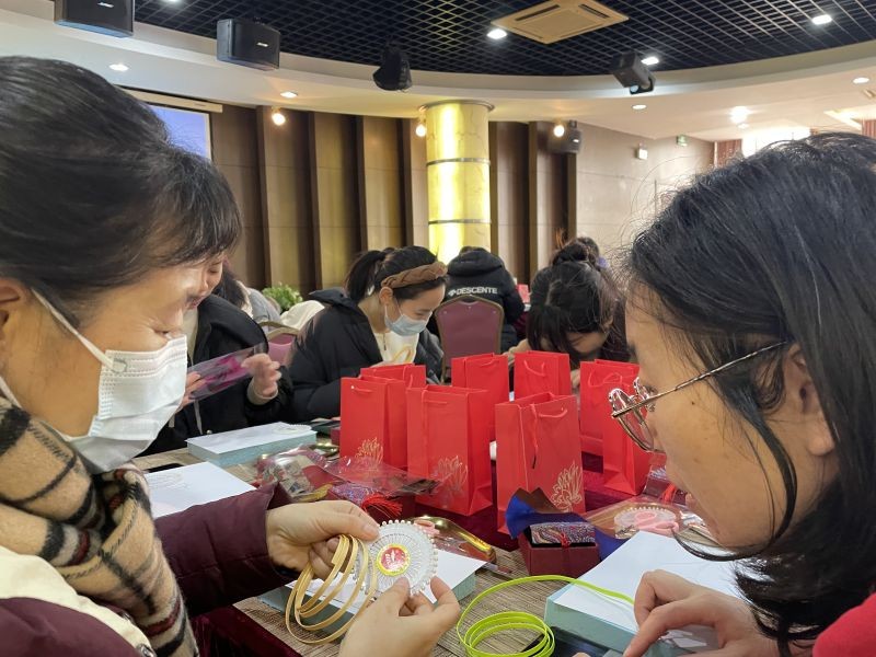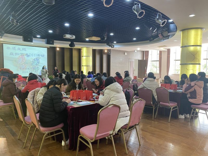 为纪念“三八”国际妇女节,弘扬并传承中国传统文化,丰富女教师的精神文化生活,表达女教师对中式审美的热爱,365英国上市集团工会于2024年3月6日在文翔路校区工会活动中心举办了海派非遗盘扣DIY艺术活动,48位女教师体验了盘扣的独特魅力。