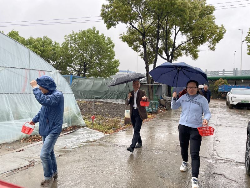 虽然春雨纷纷,老师们采草莓的兴致却丝毫未受影响。到达草莓园后,只见十几个草莓大棚绵延开去,老师们撑着雨伞、拎着小篮,不一会儿就有说有笑地钻进了大棚。松江东门草莓园的草莓品种以红颜草莓为主。红颜草莓属于大果型的鸡心草莓,不仅外观漂亮,而且口味香甜。一进大棚,草莓的甜香扑鼻而来,红彤彤的鲜果随处可见,老师们一边采摘、一边交流,沉浸在田园劳作给身心带来的愉悦中。