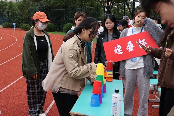 参与活动的师生们从昭信堂前序伦东路出发,环校一周到达终点宿舍园区青马之家,一路上老师们步伐矫健,学生们活力满满。在行进途中于校田径场内设有精彩的趣味活动,如考验眼力和腕力并重的投壶活动、趣味横生、欢笑连连的吹乒乓球活动,极具考验手速与反应能力的速叠杯活动等。趣味活动让师生们在享受游戏乐趣的同时,也强化了身体素质,丰富了课余生活。