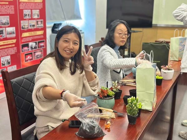 活动期间,教职工们还积极交流多肉植物的养护经验与种植技巧,分享各自的创作成果,现场洋溢着欢声笑语。