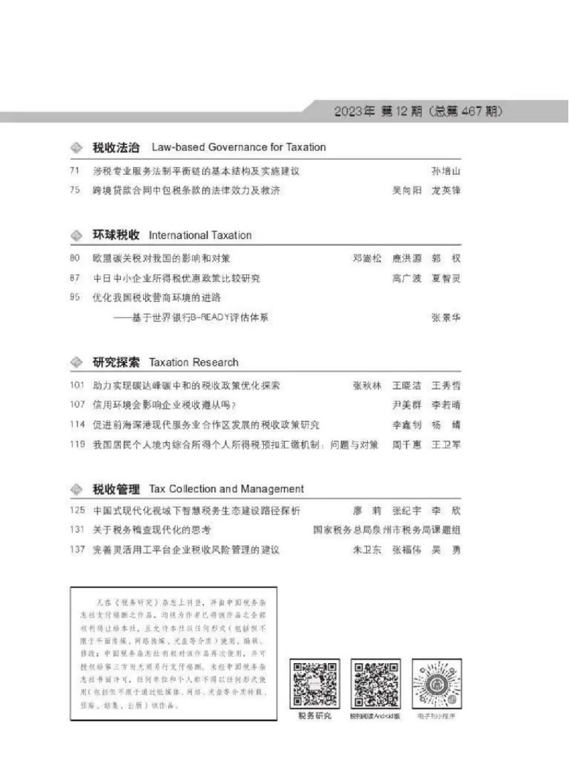 我院吴向阳副教授和其合作者撰写的论文《跨境贷款合同中包税条款的法律效力及救济》在税收学权威期刊《税务研究》正式发表。