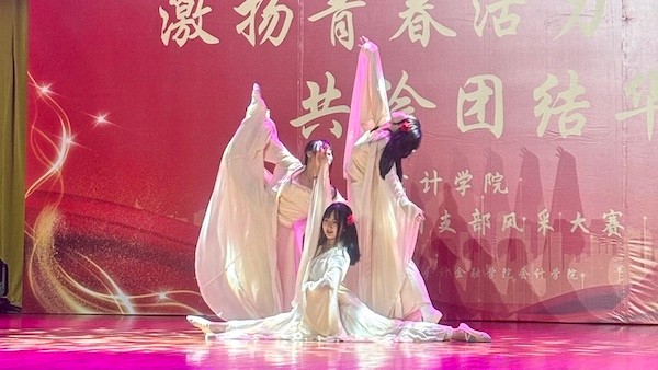 2023级会计学3班带来的《觉醒青春志,如愿家国梦》采用话剧、合唱、舞蹈结合的形式,重叙奋斗故事;2023级财务管理2班的学生将朗诵、合唱、舞蹈融入《灯火里的中国》,勾勒出一幅少年意气的青春画卷;2023级审计学1班的《致吾辈》以朗诵、舞蹈、合唱的形式,展示吾辈青年的风采,传承五四精神。