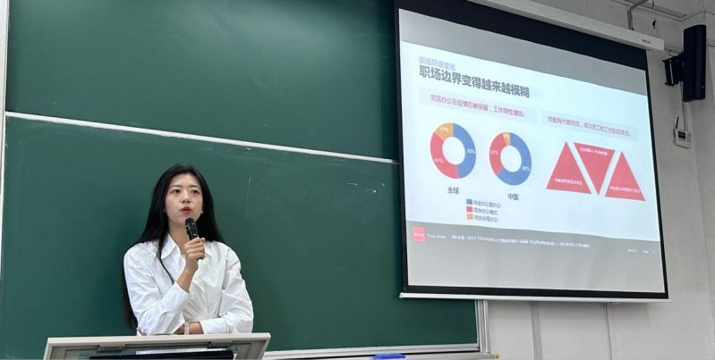 练瑾雯老师分享了“2024年中国财会行业人才趋势的洞察与职场建议”主题演讲。她详细剖析了中国职场环境变化及财会行业未来发展趋势,并着重讲述了职场人士对未来资源和发展机遇的担忧、新兴技术对财务转型的影响以及中国职场人士对AI影响的特殊关切等话题,通过直观的数据和案例多角度分析了同学们在求职过程中关注的重点问题,使大家深刻体会到职场中不仅要具有解决问题的能力,还需要树立正确的就业观。