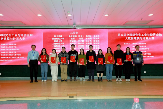 12月8日, 全国第五届研究生工业与经济金融大数据建模与计算大赛(简称“金融数据建模大赛”)决赛在上海财经大学举办,来自上海财经大学、同济大学、中国科学技术大学、中南财经政法大学、西南财经大学等近200支队伍进入决赛。经过激烈角逐,我院研究生彭真颖队伍(指导教师:万华林)荣获全国第五届金融数据建模大赛三等奖。