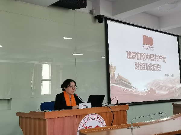 党课讲述中央人民政府成立时,财政经济面临严重困难,严峻的经济形势严重影响了人民的生活。面对复杂形势,党和人民政府采取必要的行政手段和有力的经济措施,成功组织了同投机资本做斗争的两大“战役”以及恢复经济工作后主要取得的成就。她指出,作为青年党员,一是深入学习党史,赓续共产党人精神血脉,更加坚定为人民服务;二是要发扬革命精神,持续提升专业知识和学习能力,以良好的精神状态推动财经事业蓬勃发展。