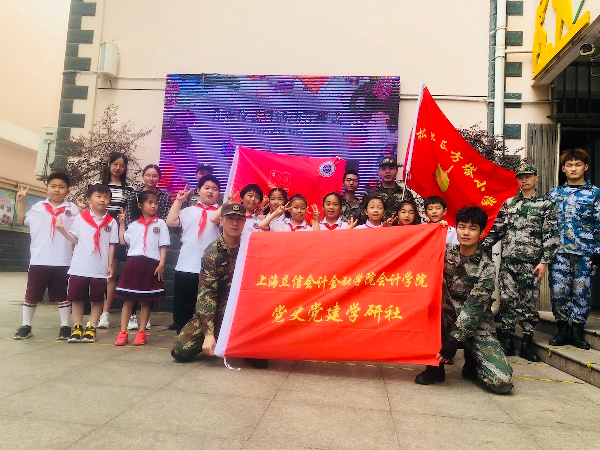 升旗仪式后,我院退伍大学生带来展演《献给祖国的荣光》,用激昂的表演向共建单位全体师生展示我院退伍大学生的铁血风采。“烽火”宣讲团成员陈佟、施懿芸分别以“国家的象征——五星红旗飘扬我心”、“历尽千辛,在所不辞——高捷成的‘红色家书’”为主题开展宣讲。不惜牺牲生命的先烈故事,展示了共产党人的坚定信仰、炽热情怀,为小朋友们提供了最生动的诠释和最直观的榜样。互动环节开展了手语教学“我爱你中国”,小学生代表为大学生系上红领巾,共同宣誓立足当下,勤勉奋进,继承革命先辈的光荣传统,做社会主义接班人。