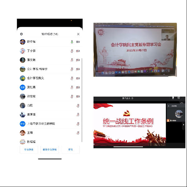 统战委员邵丽丽带领大家学习《中国共产党统一战线工作条例》,她介绍了《条例》修订的背景、过程和意义,通过与《条例》(试行)版本的对照,认真理解新修订《条例》的丰富内涵和精神实质,引导统战成员增强党的领导意识,树牢“四个意识”,坚定“四个自信”,坚决做到“两个维护”。