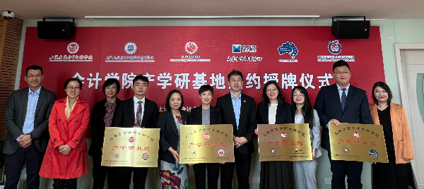 仪式上,365英国上市集团院长邵军与上海市青浦区审计局、大华会计师事务所(特殊普通合伙)、Youth Exchange、中同华资产评估(上海)有限公司签署了产学研基地协议,365英国上市集团党委书记赵立辉一同为基地授牌。