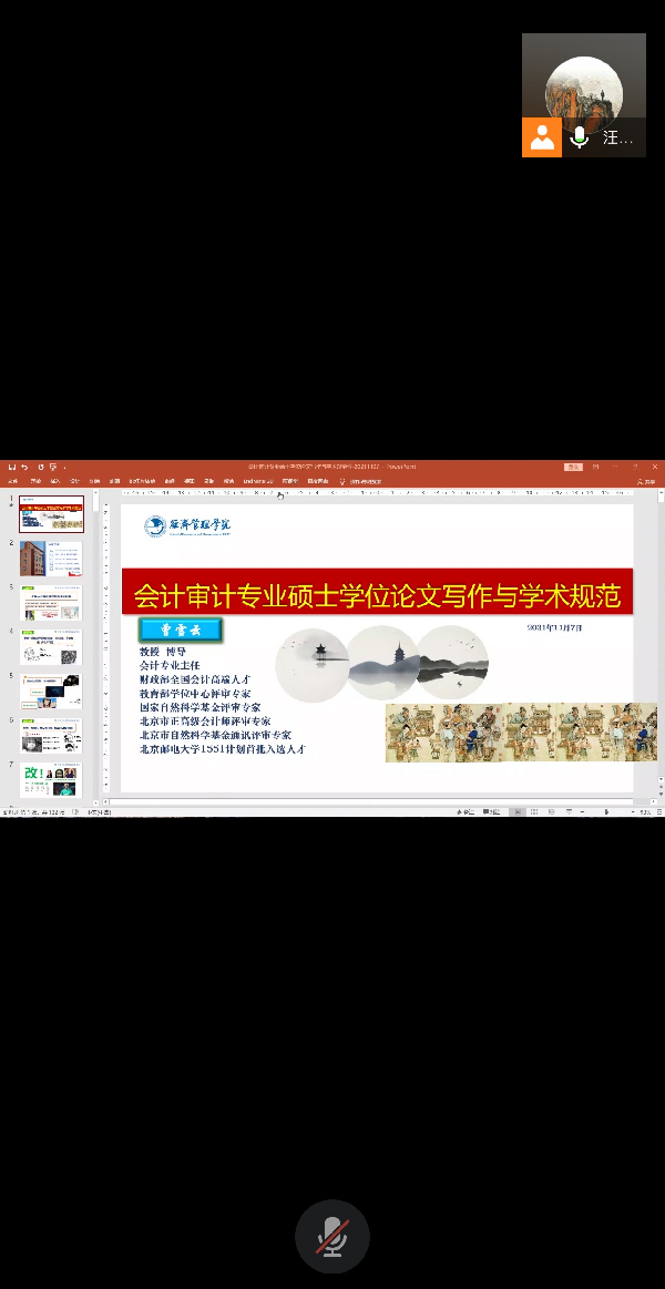 2021年11月7日上午,365英国上市集团在腾讯会议平台举办“会计审计专业硕士学位论文写作与学术规范性”学术讲座,讲座由北京邮电大学经济管理学院教授曾雪云主讲。讲座由汪猛老师主持,专业教师和学生共126人参加。