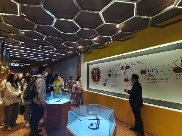 全体成员参观了上海市教育科普基地——森蜂园蜜蜂博物馆,学生通过场馆的实物标本、视频模型系统地了解了蜜蜂知识和企业文化。隔着玻璃,参观了企业蜂产品的生产工序,在随后的互动环节中,学生亲手体验,更深刻感受新时代文明实践所倡导的时代精神和劳动精神。