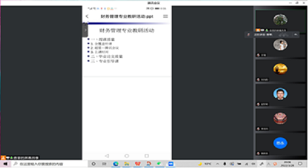 教学研讨中各专业对学校和学院近期开展的线上听课巡课、教学质量监督等教学检查工作进行了传达,并就目前线上教学存在的问题及解决方案进行了讨论。研讨中老师们相互借鉴了效果突出的授课方法和经验,并对一些典型性问题,如出勤、互动、防疫等进行了讨论。