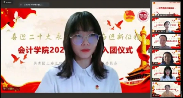 2020级会计学4班杨思远同学代表优秀团员发言,她指出团员并不简单是一个身份,更多的是一种责任和担当。作为共青团的一份子,要始终牢记誓词,忠实履行诺言,坚定理想信念,听党话跟党走,铭记初心使命,勇于担当,高扬理想的风帆,焕发青春的激情,为团组织、为学校增光添彩。尤其是在面对疫情的难关,作为团员更要勇于担当,为疫情防控贡献出自己的一份力量,以实际行动弘扬抗疫精神,凝聚奋进之力,体现出新时代青年的责任意识,越是艰难越向前。青春因磨砺而出彩,人生因奋斗而升华,用担当实干为青春增色,用自己的方式奉献力量。