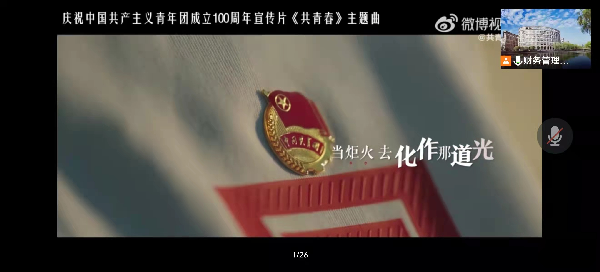 会上,同学们集体观看庆祝共青团成立一百周年宣传片MV《有我》,继而共同学习习近平总书记在中国人民大学考察时的讲话重要内容,深刻领悟习近平总书记勉励全国广大青年要牢记党的教诲,立志民族复兴,不负韶华,不负时代,不负人民,在青春的赛道上奋力奔跑,争取跑出当代青年的最好成绩。