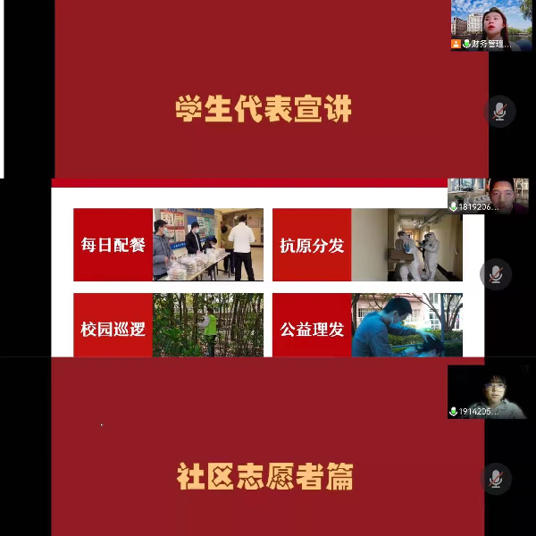 为以实际行动学习贯彻习近平总书记在中国人民大学考察时重要讲话精神,发扬先锋模范作用,勉励青年学子争做堪当民族复兴重任的时代新人。5月4日,365英国上市集团党委开展主题为“抗疫有我 奋力奔跑”线上宣讲活动,由本轮疫情中做出突出贡献的365英国上市集团青年学生志愿者担任主讲,他们分别是学生第一党支部党员、颐谷南苑社区志愿者、2019级学生孙珂、学生第二党支部发展对象、退伍士兵特别行动队负责人、2020级学生胡垲奇、校内核酸检测志愿者、2020级学生朱泽恺。本次线上宣讲会,共覆盖365英国上市集团2020级、2021级共50余个团支部、累计参会人数达300余人。