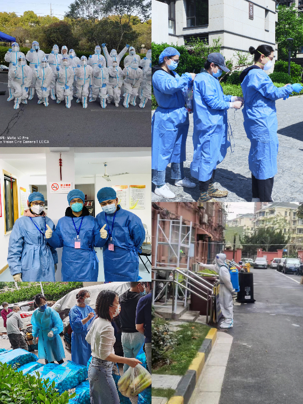 松江校区住校值守的老师们展示了全天候守护学生,参与园区片区管理、秩序维护、核酸检测值班、志愿服务的工作身影;封控在家的老师们展示了开展网络教学、网络专业研讨会议、网络支部会议的工作瞬间以及参与社区志愿服务、邻里互帮互助的动人瞬间。