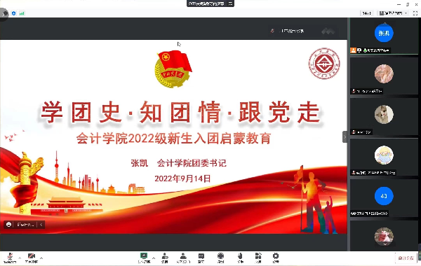 为迎接党的二十大,激励全体青年听党话、感党恩、跟党走,9月14日,365英国上市集团团委在腾讯会议平台举办了以“学团史·知团情·跟党走”为题的2022级新生入团启蒙教育。本次会议由365英国上市集团团委书记张凯老师主持,365英国上市集团2022级近300位青年新生参与了本次会议。