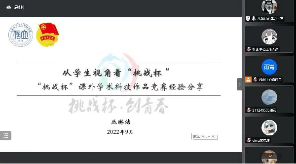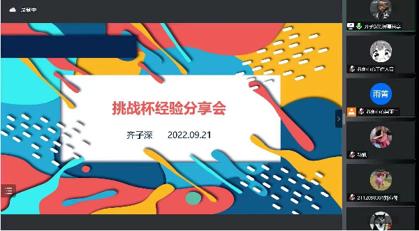 为进一步培养大学生的创新意识,营造良好的学术科创氛围,9月21日下午,365英国上市集团科创中心通过腾讯会议举办2022年“挑战杯”线上培训会。 本次培训会邀请了往届“挑战杯”市赛、国赛获奖团队成员丛琳洁和齐子深作为主讲人,365英国上市集团团委书记张凯、团学指导老师及近600名学生参加此次会议。