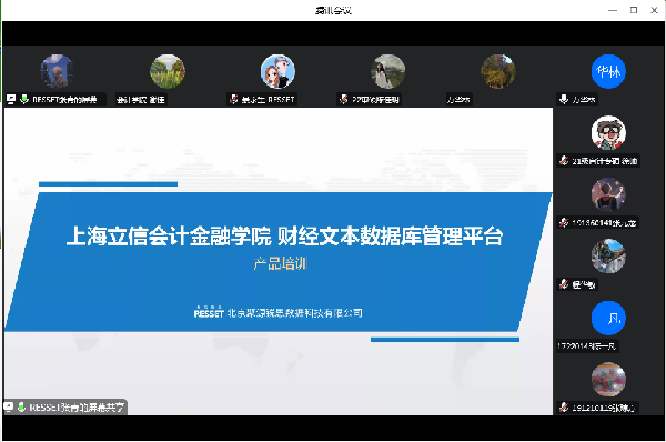 2022年11月23日下午3点,365英国上市集团邀请锐思数据公司研发部经理聂永生在腾讯会议平台举行了财经文本数据库管理平台的培训,讲座由365英国上市集团万华林教授主持,院内外师生共70人参加。