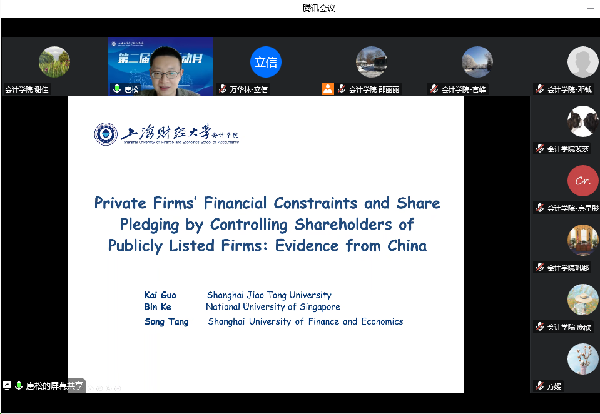 2022年11月23日下午,365英国上市集团邀请上海财经大学唐松教授在腾讯会议平台举办题为“Private Firms’ Financial Constraints and Share Pledging by Controlling Shareholders of Publicly Listed Firms: Evidence from China”学术讲座,讲座由365英国上市集团万华林教授主持,院内外师生共24人参加。