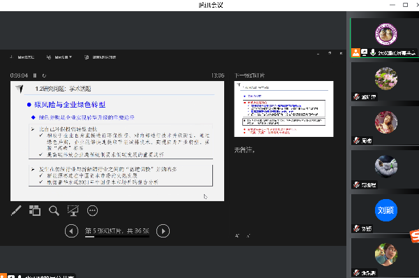 张副教授分享的论文围绕加快建设绿色低碳循环发展经济体系,推动经济结构转型升级的“双碳目标”,研究了减排政策引导企业加快绿色发展的转型效应,以及需要的配套政策,从绿色并购的行为以及市场收益分析了碳排放政策的引导效果及需要的金融支持。