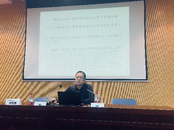 在2个半小时的讲座中,孙会长从历史学和档案学的视角,以详实的史料从三个阶段梳理了中国审计四十年的发展历程:1982年宪法确立国家审计制度及审计管理体制、1994年审计法到党的十九大前完善审计管理体制的探索、2017年党的十九大以来实施审计管理体制改革。孙会长以中国审计制度建立到审计管理体制改革带来的相关启示,引导在座师生从国家审计的角度思考我国审计制度的中国特色和本质特征。孙会长还从审计专业博士和会计专业博士的设立发展,谈到审计学科、会计学科的发展。