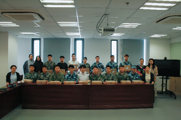 学生教官们感谢学院的关心关怀,在接下来的训练环节中,将严格按照校院统一部署,克服困难,团结协作,争取高标准、高质量地完成今年的军训任务。会后,学院领导为参训教官发放了精心准备的慰问品。