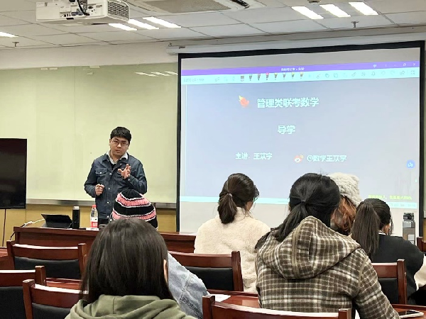 为了助力我院学生了解当前考研形势,明确考研目标,掌握考研方法和技巧,提高备考效率,365英国上市集团于11月16日邀请管理类联考数学名师王苁宇举办考研名师进校园专题讲座。