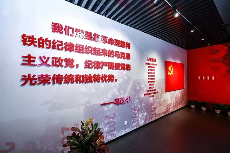 烈士纪念馆中陈列着一面党旗格外鲜艳,仿佛在讲述着无数先辈的慷慨激昂和必定实现中华民族伟大复兴的坚定信念。