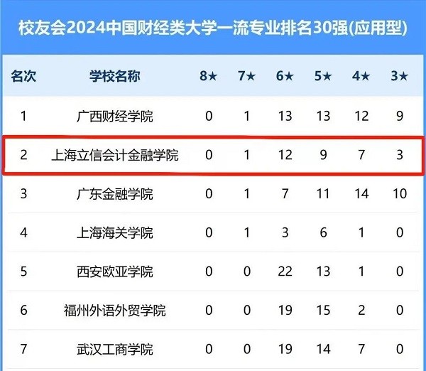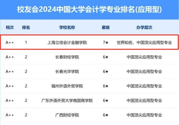 财务管理专业获评六星级应用型专业(6★,A++);跻身中国顶尖应用型专业行列;排名再创新高,荣登校友会2024中国大学财务管理专业排名(应用型)首位。