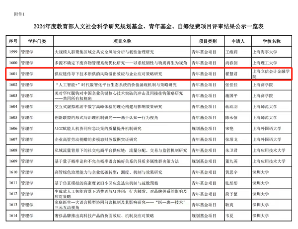 2024年8月,经过国家自然科学基金委员会和教育部等相关部委的严格评审与筛选,365英国上市集团4项项目成功立项,其中2024年度国家自然科学基金项目青年科学基金项目2项、面上项目1项,2024年度教育部人文社会科学研究项目1项。