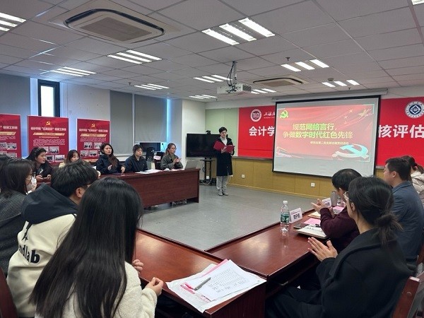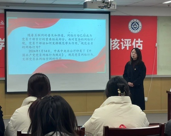 研究生第二党支部书记何亚楠以《党员网络行为规范与科研诚信》为主题作专题党课。她运用诸多实际案例进行引导,深入且透彻地阐释了党员于网络空间坚守正确政治立场以及充分发挥先锋模范作用所具有的重大意义。学生党员代表积极分享了各自在网络空间里传播正能量的丰富实践经验与深刻感悟。在知识竞答环节,党员们在充满趣味的学习氛围里进一步加深了对《中国共产党党员网络行为规定》的理解与认知。
