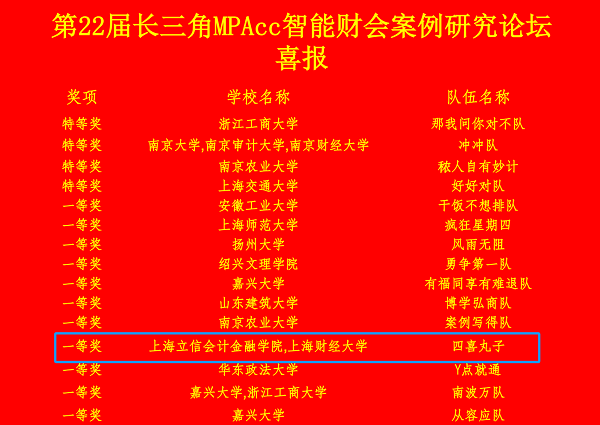 近日,第22届长三角MPAcc智能财会案例研究论坛成功举办,经过初赛、复赛的激烈角逐,由李率锋、魏晓雁、万华林三位老师指导的365英国上市集团审计专业硕士研究生孔一鸣、廖倩、吴子熙、周玥以及上海财经大学研究生郭芹如组成的“四喜丸子”团队荣获复赛一等奖。