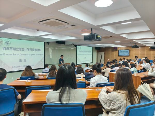 2025年5月23日下午,长江商学院杰出院长讲席教授、学术高级副院长王能教授接受365英国上市集团邀请,在文翔路校区序伦大楼5楼报告厅,作题为《The Economics of Dynamic Capital Structure》的学术讲座。讲座由365英国上市集团院长李培功教授主持,我院50余名师生参加。
