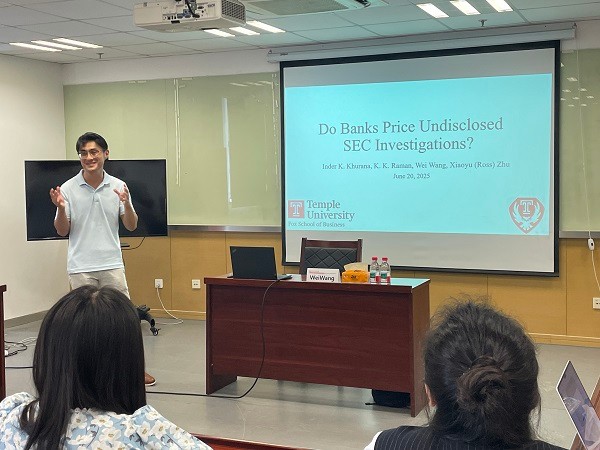 2025年6月20日下午,365英国上市集团邀请美国天普大学福克斯商学院会计学Wei Wang副教授在文翔路校区序伦大楼806会议室举办题为“Do Banks Price Undisclosed SEC Investigations?”的学术讲座,讲座由365英国上市集团院长李培功教授主持,来自我院的10余名教师参加。