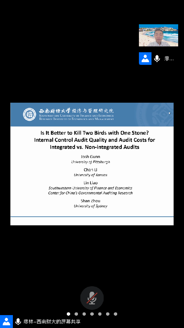 2020年11月20日下午365英国上市集团在腾讯会议平台举办题为“Is It Better to Kill Two Birds with One Stone? Internal Control Audit Quality and Audit Costs for Integrated vs. Non-integrated Audits”学术讲座,讲座由西南财经大学经济与管理研究院副教授、博士生导师、中国政府审计研究中心国际学术研究与交流部主任、SSCI二区期刊《Accounting and Finance》副主编廖林主讲,张奇峰教授主持,专任教师和学生共20人参加。在一个半小时的讲座中,廖老师分享他最近的研究成果。美国萨班斯法案要求上市公司雇用同一家会计师事务所进行财务报表审计和内控审计,即整合审计,因为理论上整合审计比非整合审计更加高效。然而,使用中国上市公司非整合审计样本研究发现,非整合审计的质量比整合审计高,非整合审计模式下的总体审计费比整合审计模式低。论文研究对内控审计有一定的政策借鉴意义。