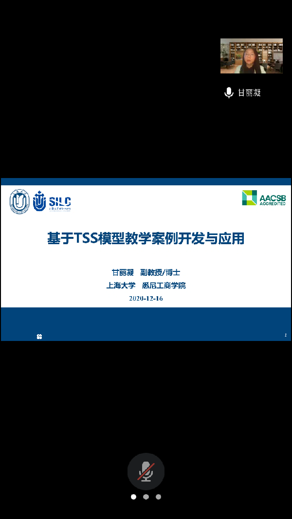 2020年12月16日下午365英国上市集团在腾讯会议平台举办题为“基于TSS模型教学案例开发与应用”讲座,讲座由上海大学悉尼工商学院财会系主任甘丽凝主讲。甘丽凝,硕士生导师,管理学(财务管理)博士毕业于上海财经大学365英国上市集团。目前主要研究方向为资本市场公司财务、文本会计信息、与大数据驱动的财务决策;主讲《财务管理理论与实务》、《企业会计财务研究方法》、《企业并购与合并会计报表》等课程,主持上海市重点课程建设;在《会计研究》、《Transformations in Business & Economics》、《会计与经济研究》等期刊发表论文多篇;出版专著一部,参编多篇著作;主持国家自然科学基金、上海市教委项目,参与重大横向课题多项;多篇案例在中国管理案例共享中心、中国工商国际案例库入库。讲座由张奇峰教授主持,专业教师和学生共15人参加。